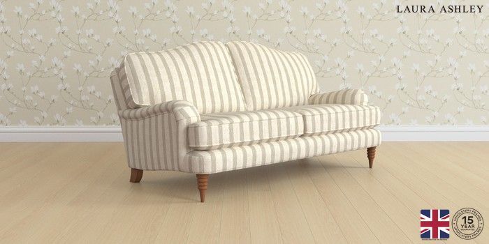 6.12.1 Buy Lynden by Laura Ashley 3 Seater Small Sofa Kinsham Stripe Natural Ornate Turned - Teak from the Laura Ashley online shop Click here to use our website with more accessibility support, for example screen readers