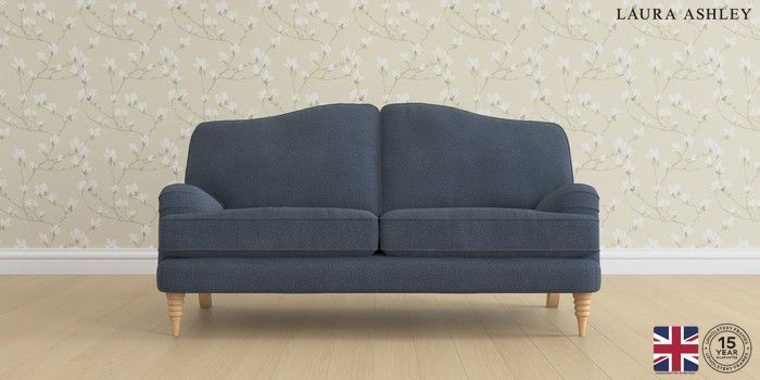6.12.1 Buy Lynden by Laura Ashley 3 Seater Small Sofa Lundar Chenille Navy Blue Ornate Turned - Light Oak from the Laura Ashley online shop Click here to use our website with more accessibility support, for example screen readers
