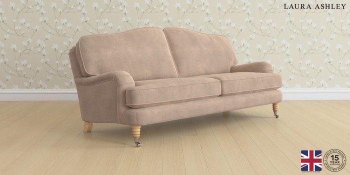 6.12.1 Buy Lynden by Laura Ashley 3 Seater Sofa Ailsworth Mink Natural Ornate Chrome Castor - Light Oak from the Laura Ashley online shop Click here to use our website with more accessibility support, for example screen readers