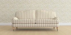 6.12.1 Buy Lynden by Laura Ashley 3 Seater Sofa Kinsham Stripe Natural Ornate Chrome Castor - Light Oak from the Laura Ashley online shop Click here to use our website with more accessibility support, for example screen readers
