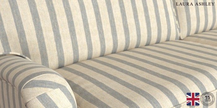 6.12.1 Buy Lynden by Laura Ashley 4 Seater Sofa Kinsham Stripe Seaspray Blue Ornate Brass Castor - Black from the Laura Ashley online shop Click here to use our website with more accessibility support, for example screen readers