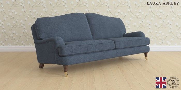 6.12.1 Buy Lynden by Laura Ashley 4 Seater Sofa Lundar Chenille Navy Blue Ornate Brass Castor - Chestnut from the Laura Ashley online shop Click here to use our website with more accessibility support, for example screen readers