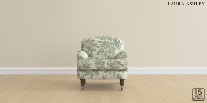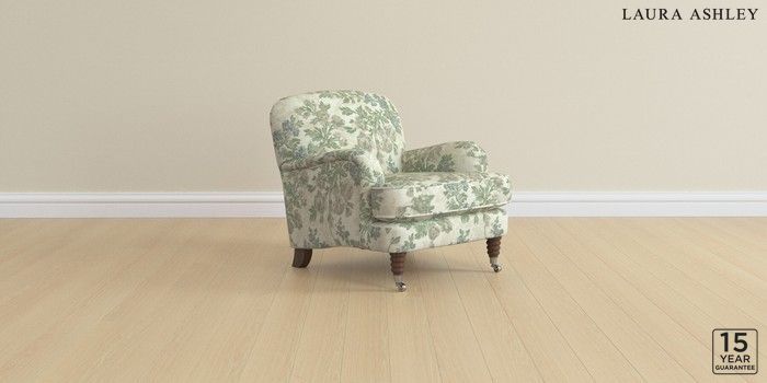 6.11.4 Buy Lynden by Laura Ashley Armchair Ellerby Seaspray Blue Ornate Chrome Castor - Chestnut from the Laura Ashley online shop Click here to use our website with more accessibility support, for example screen readers