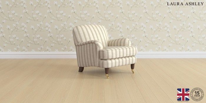 6.12.1 Buy Lynden by Laura Ashley Armchair Kinsham Stripe Natural Ornate Brass Castor - Chestnut from the Laura Ashley online shop Click here to use our website with more accessibility support, for example screen readers