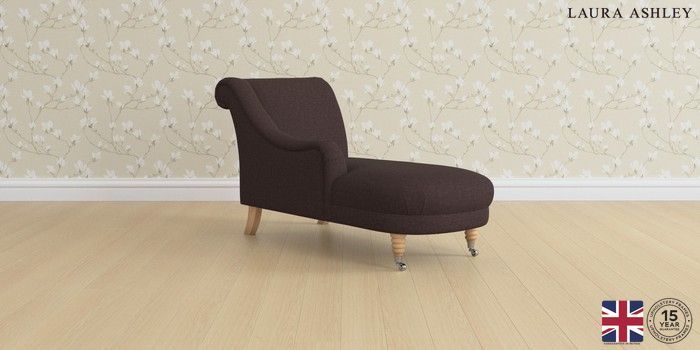 7.0.3 Buy Lynden by Laura Ashley Chaise Longue Left Hand Bainton Chocolate Brown Ornate Chrome Castor - Light Oak from the Laura Ashley online shop Click here to use our website with more accessibility support, for example screen readers