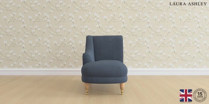 6.12.1 Buy Lynden by Laura Ashley Chaise Longue Left Hand Lundar Chenille Navy Blue Ornate Brass Castor - Light Oak from the Laura Ashley online shop Click here to use our website with more accessibility support, for example screen readers