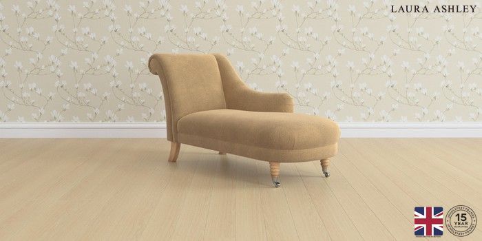 6.12.1 Buy Lynden by Laura Ashley Chaise Longue Right Hand Lundar Chenille Caramel Natural Ornate Chrome Castor - Light Oak from the Laura Ashley online shop Click here to use our website with more accessibility support, for example screen readers