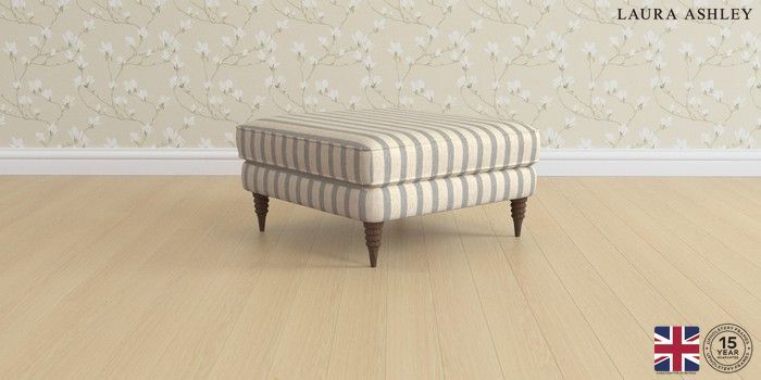 6.12.1 Buy Lynden by Laura Ashley Extra Large Footstool Kinsham Stripe Seaspray Blue Ornate Turned - Chestnut from the Laura Ashley online shop Click here to use our website with more accessibility support, for example screen readers