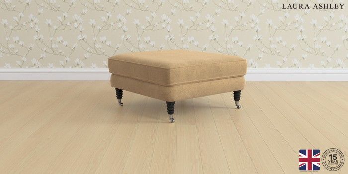 6.12.1 Buy Lynden by Laura Ashley Extra Large Footstool Lundar Chenille Caramel Natural Ornate Chrome Castor - Black from the Laura Ashley online shop Click here to use our website with more accessibility support, for example screen readers