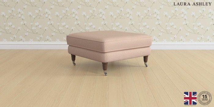 6.12.1 Buy Lynden by Laura Ashley Extra Large Footstool Melbreak Geo Chalk Pink Ornate Chrome Castor - Chestnut from the Laura Ashley online shop Click here to use our website with more accessibility support, for example screen readers