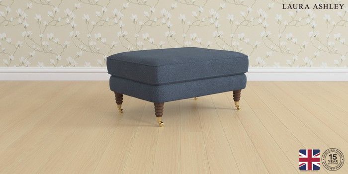 6.12.1 Buy Lynden by Laura Ashley Footstool Lundar Chenille Navy Blue Ornate Brass Castor - Chestnut from the Laura Ashley online shop Click here to use our website with more accessibility support, for example screen readers