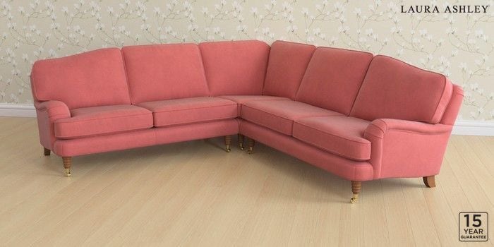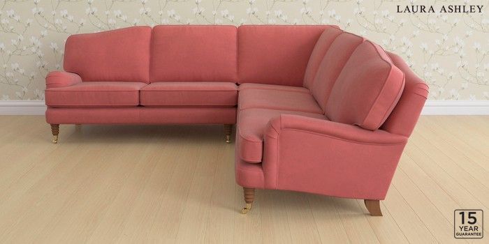 6.12.1 Buy Lynden by Laura Ashley Medium Corner Sofa - Universal Ailsworth Old Rose Pink Ornate Brass Castor - Teak from the Laura Ashley online shop Click here to use our website with more accessibility support, for example screen readers