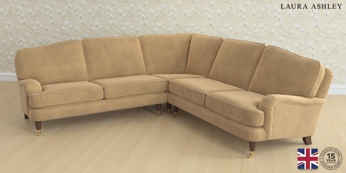 6.12.1 Buy Lynden by Laura Ashley Medium Corner Sofa - Universal Lundar Chenille Caramel Natural Ornate Brass Castor - Chestnut from the Laura Ashley online shop Click here to use our website with more accessibility support, for example screen readers