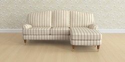 6.12.1 Buy Lynden by Laura Ashley Medium Sofa Chaise - Universal Kinsham Stripe Natural Ornate Brass Castor - Teak from the Laura Ashley online shop Click here to use our website with more accessibility support, for example screen readers