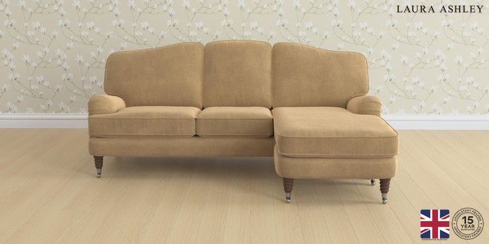 6.12.1 Buy Lynden by Laura Ashley Medium Sofa Chaise - Universal Lundar Chenille Caramel Natural Ornate Chrome Castor - Chestnut from the Laura Ashley online shop Click here to use our website with more accessibility support, for example screen readers