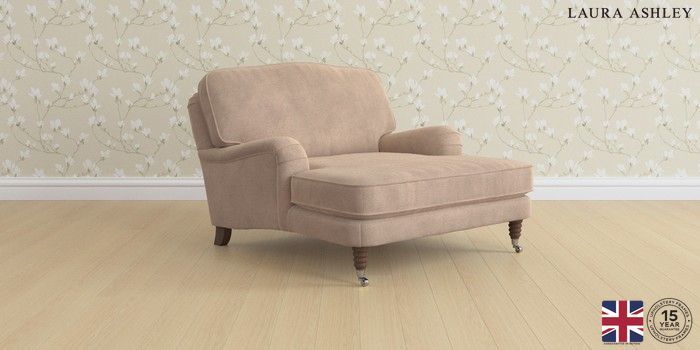 6.12.1 Buy Lynden by Laura Ashley Snuggle Chaise Ailsworth Mink Natural Ornate Chrome Castor - Chestnut from the Laura Ashley online shop Click here to use our website with more accessibility support, for example screen readers
