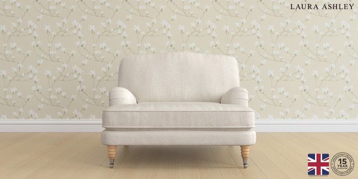 7.2.6 Buy Lynden by Laura Ashley Snuggle Chaise Anneliese Oyster Natural Ornate Chrome Castor - Light Oak from the Laura Ashley online shop Click here to use our website with more accessibility support, for example screen readers