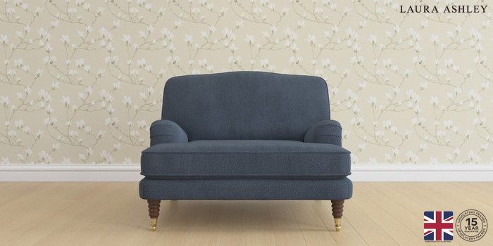 6.12.1 Buy Lynden by Laura Ashley Snuggle Chaise Lundar Chenille Navy Blue Ornate Brass Castor - Chestnut from the Laura Ashley online shop Click here to use our website with more accessibility support, for example screen readers
