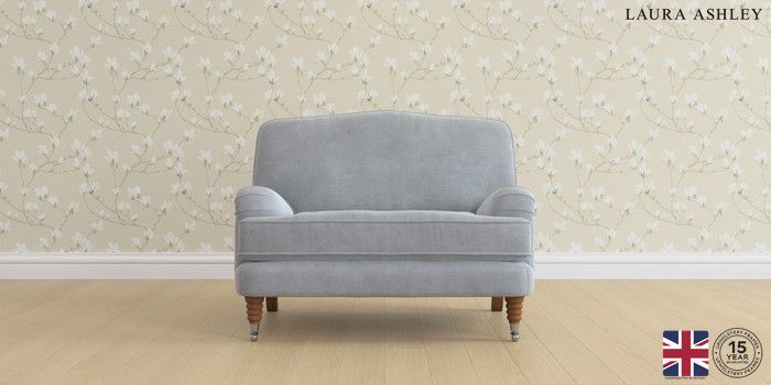 6.12.1 Buy Lynden by Laura Ashley Snuggle Peyton Powder Blue Ornate Chrome Castor - Teak from the Laura Ashley online shop Click here to use our website with more accessibility support, for example screen readers