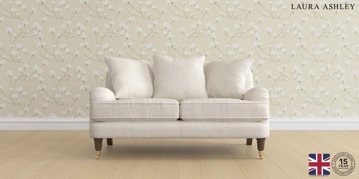 7.2.6 Buy Lynden Scatter Back by Laura Ashley 2 Seater Small Sofa Anneliese Oyster Natural Ornate Brass Castor - Chestnut from the Laura Ashley online shop Click here to use our website with more accessibility support, for example screen readers