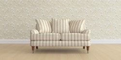 6.12.1 Buy Lynden Scatter Back by Laura Ashley 2 Seater Small Sofa Kinsham Stripe Natural Ornate Chrome Castor - Teak from the Laura Ashley online shop Click here to use our website with more accessibility support, for example screen readers