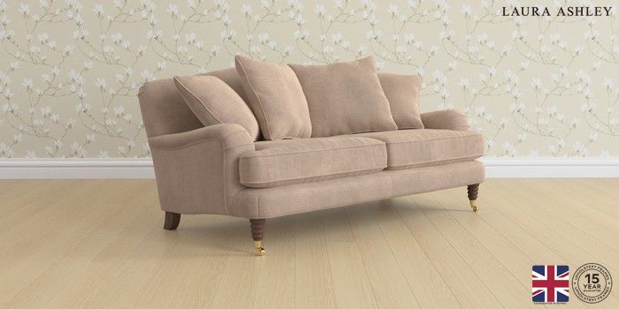6.12.1 Buy Lynden Scatter Back by Laura Ashley 3 Seater Small Sofa Ailsworth Mink Natural Ornate Brass Castor - Chestnut from the Laura Ashley online shop Click here to use our website with more accessibility support, for example screen readers