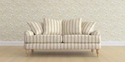 6.12.1 Buy Lynden Scatter Back by Laura Ashley 3 Seater Small Sofa Kinsham Stripe Natural Ornate Brass Castor - Light Oak from the Laura Ashley online shop Click here to use our website with more accessibility support, for example screen readers