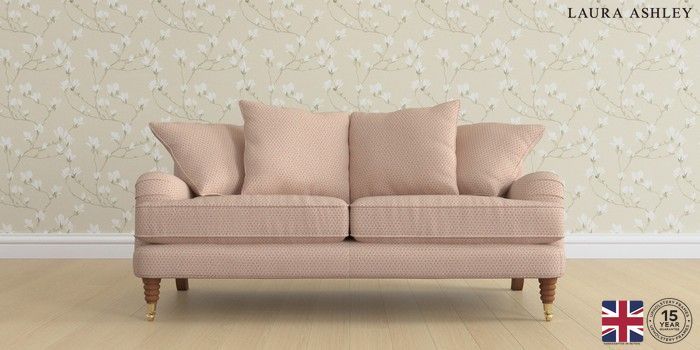 6.12.1 Buy Lynden Scatter Back by Laura Ashley 3 Seater Small Sofa Melbreak Geo Chalk Pink Ornate Brass Castor - Teak from the Laura Ashley online shop Click here to use our website with more accessibility support, for example screen readers