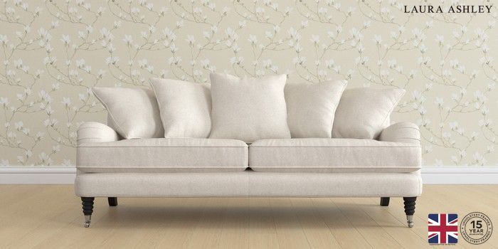 7.2.6 Buy Lynden Scatter Back by Laura Ashley 3 Seater Sofa Anneliese Oyster Natural Ornate Chrome Castor - Black from the Laura Ashley online shop Click here to use our website with more accessibility support, for example screen readers