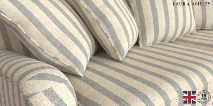 6.12.1 Buy Lynden Scatter Back by Laura Ashley 3 Seater Sofa Kinsham Stripe Seaspray Blue Ornate Chrome Castor - Light Oak from the Laura Ashley online shop Click here to use our website with more accessibility support, for example screen readers