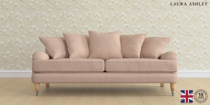 6.12.1 Buy Lynden Scatter Back by Laura Ashley 3 Seater Sofa Melbreak Geo Chalk Pink Ornate Chrome Castor - Light Oak from the Laura Ashley online shop Click here to use our website with more accessibility support, for example screen readers