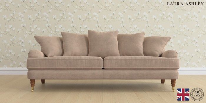 6.12.1 Buy Lynden Scatter Back by Laura Ashley 4 Seater Sofa Ailsworth Mink Natural Ornate Brass Castor - Teak from the Laura Ashley online shop Click here to use our website with more accessibility support, for example screen readers