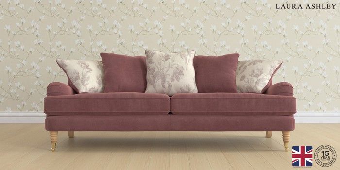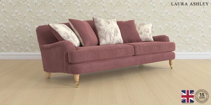6.12.1 Buy Lynden Scatter Back by Laura Ashley 4 Seater Sofa Gosford Floral Combo Plum Purple Ornate Brass Castor - Light Oak from the Laura Ashley online shop Click here to use our website with more accessibility support, for example screen readers