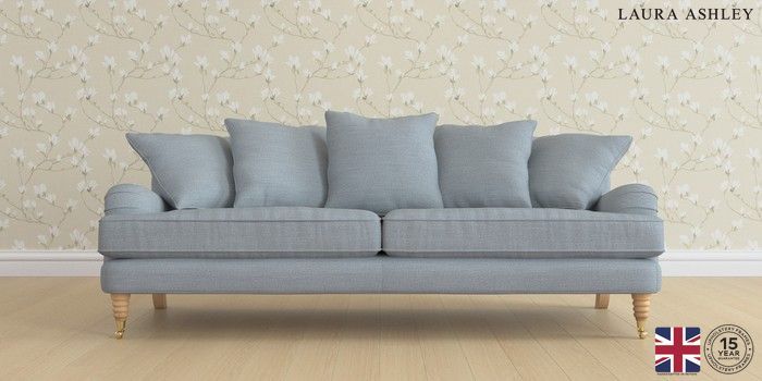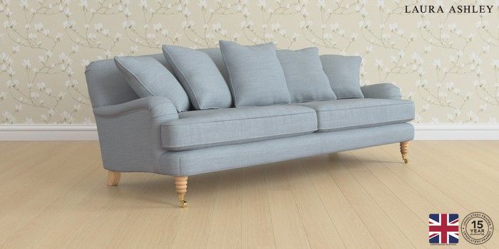 6.12.1 Buy Lynden Scatter Back by Laura Ashley 4 Seater Sofa Kinsham Seaspray Blue Ornate Brass Castor - Light Oak from the Laura Ashley online shop Click here to use our website with more accessibility support, for example screen readers
