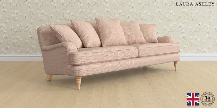 6.12.1 Buy Lynden Scatter Back by Laura Ashley 4 Seater Sofa Melbreak Geo Chalk Pink Ornate Turned - Light Oak from the Laura Ashley online shop Click here to use our website with more accessibility support, for example screen readers