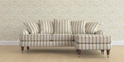 6.12.1 Buy Lynden Scatter Back by Laura Ashley Medium Sofa Chaise - Universal Kinsham Stripe Seaspray Blue Ornate Chrome Castor - Chestnut from the Laura Ashley online shop Click here to use our website with more accessibility support, for example screen readers