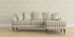 6.12.1 Buy Lynden Scatter Back by Laura Ashley Medium Sofa Chaise - Universal Kinsham Stripe Seaspray Blue Ornate Chrome Castor - Teak from the Laura Ashley online shop Click here to use our website with more accessibility support, for example screen readers