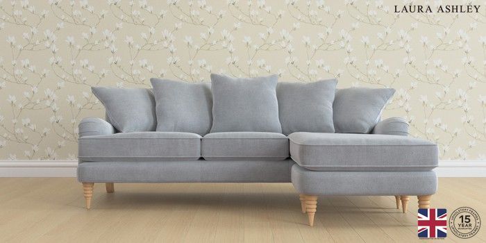 6.12.1 Buy Lynden Scatter Back by Laura Ashley Medium Sofa Chaise - Universal Peyton Powder Blue Ornate Turned - Light Oak from the Laura Ashley online shop Click here to use our website with more accessibility support, for example screen readers