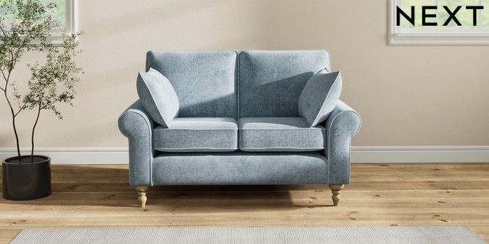 7.2.6 Buy Mallory 2 Seater Small Sofa Plush Chenille Light Blue High Turned - Light from the Laura Ashley online shop Click here to use our website with more accessibility support, for example screen readers