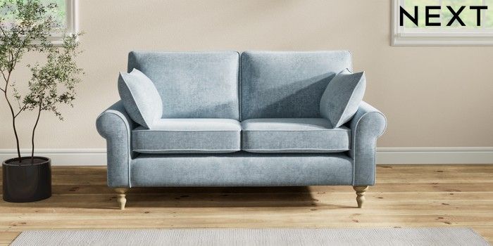 7.2.6 Buy Mallory 2 Seater Sofa Plush Chenille Light Blue High Turned - Light from the Laura Ashley online shop Click here to use our website with more accessibility support, for example screen readers
