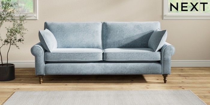 7.2.6 Buy Mallory 3 Seater Sofa Plush Chenille Light Blue High Turned - Mid from the Laura Ashley online shop Click here to use our website with more accessibility support, for example screen readers