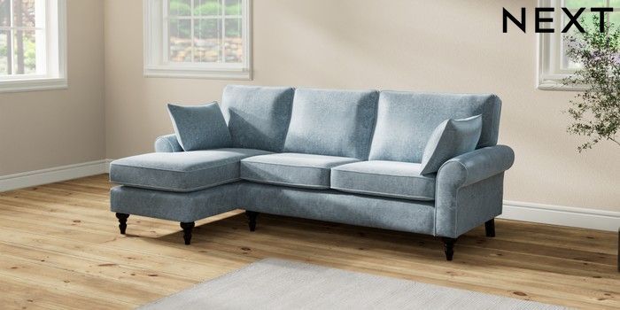 7.2.6 Buy Mallory Medium Sofa Chaise - Left Hand Plush Chenille Light Blue High Turned - Dark from the Laura Ashley online shop Click here to use our website with more accessibility support, for example screen readers