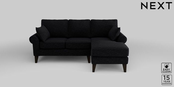 6.12.1 Buy Mallory Small Sofa Chaise - Right Hand Fine Chenille Easy Clean Black High Tapered - Dark from the Laura Ashley online shop Click here to use our website with more accessibility support, for example screen readers