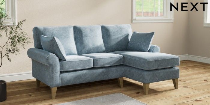 7.2.6 Buy Mallory Small Sofa Chaise - Right Hand Plush Chenille Light Blue High Tapered - Light from the Laura Ashley online shop Click here to use our website with more accessibility support, for example screen readers