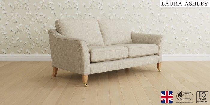 6.11.4 Buy Marford by Laura Ashley 3 Seater Small Sofa Bainton Natural Straight Brass Castor - Light Oak from the Laura Ashley online shop Click here to use our website with more accessibility support, for example screen readers