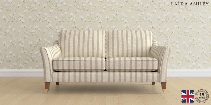 6.12.1 Buy Marford by Laura Ashley 3 Seater Small Sofa Kinsham Stripe Natural Straight Brass Castor - Teak from the Laura Ashley online shop Click here to use our website with more accessibility support, for example screen readers
