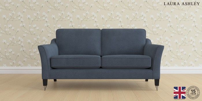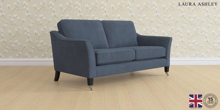 6.12.1 Buy Marford by Laura Ashley 3 Seater Small Sofa Lundar Chenille Navy Blue Straight Chrome Castor - Black from the Laura Ashley online shop Click here to use our website with more accessibility support, for example screen readers