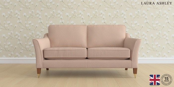 6.12.1 Buy Marford by Laura Ashley 3 Seater Small Sofa Melbreak Geo Chalk Pink Straight Brass Castor - Teak from the Laura Ashley online shop Click here to use our website with more accessibility support, for example screen readers