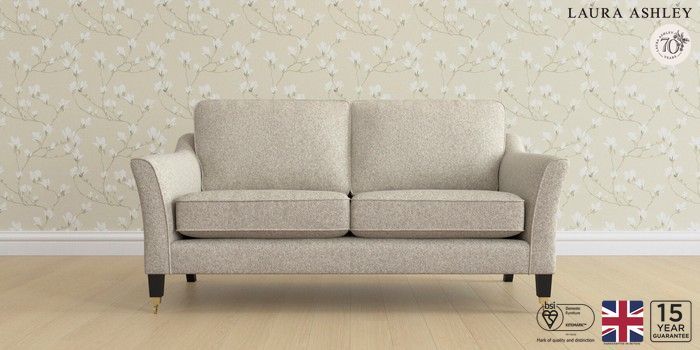 6.11.4 Buy Marford by Laura Ashley 3 Seater Small Sofa Tichwell Stone Natural Straight Brass Castor - Black from the Laura Ashley online shop Click here to use our website with more accessibility support, for example screen readers
