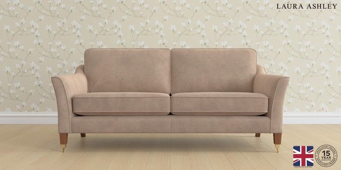 6.12.1 Buy Marford by Laura Ashley 3 Seater Sofa Ailsworth Mink Natural Straight Brass Castor - Teak from the Laura Ashley online shop Click here to use our website with more accessibility support, for example screen readers